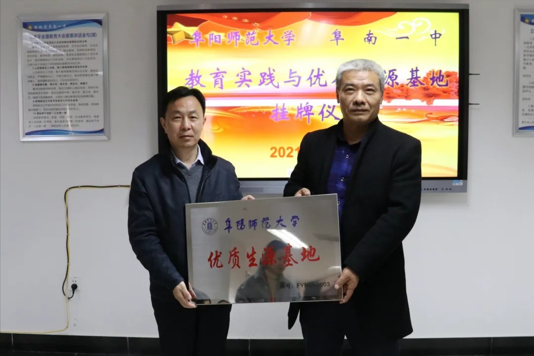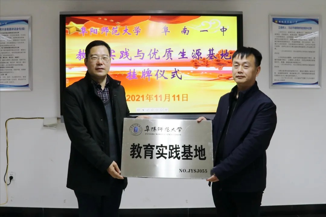 近日,阜南一中举行了“阜阳师范大学与阜南一中共建教育实践与优质生源基地挂牌仪式”。